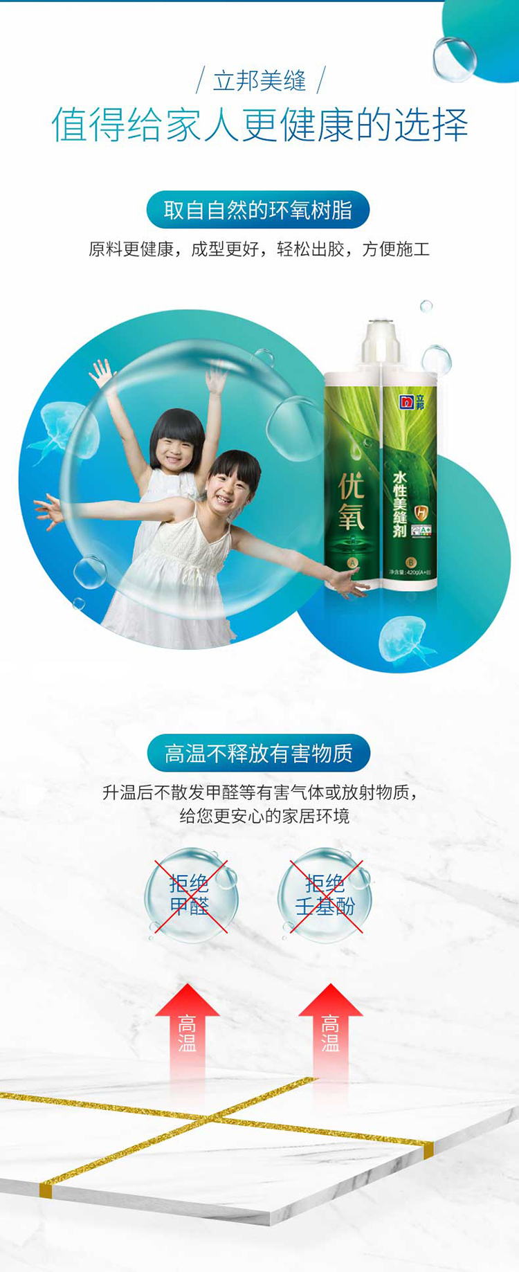 立邦優(yōu)氧水性美縫劑瓷磚地磚專用填縫劑:高分子結(jié)構(gòu)重組,浴于水且穩(wěn)定性好;