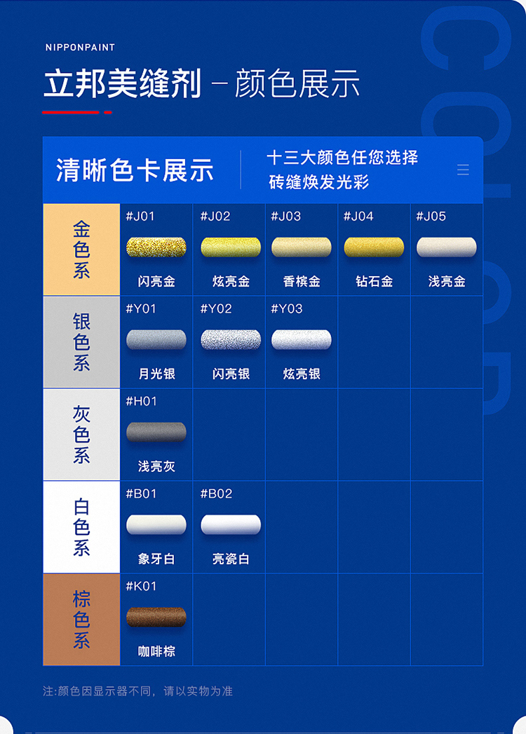 立邦甄彩美縫劑瓷磚地磚專用美縫膠填縫