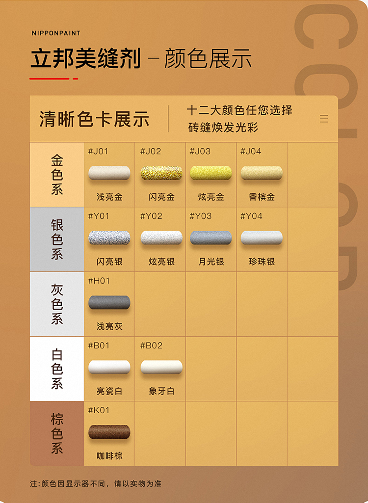 立邦地暖縫美縫劑瓷磚地磚專用美瓷膠美縫膠填縫:環(huán)保低味,采用立邦凈味技術,使用高成本環(huán)保原料,施工低味,為居家健康保駕護航。