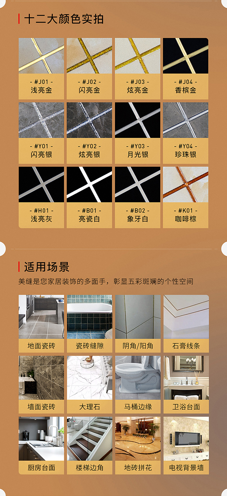 立邦地暖縫美縫劑瓷磚地磚專用美瓷膠美縫膠填縫:抗劃抗?jié)B,精選進口高密度環(huán)氧樹脂原料,擺平劃痕,污漬不易滲透。持久煥發(fā)光亮色彩。
