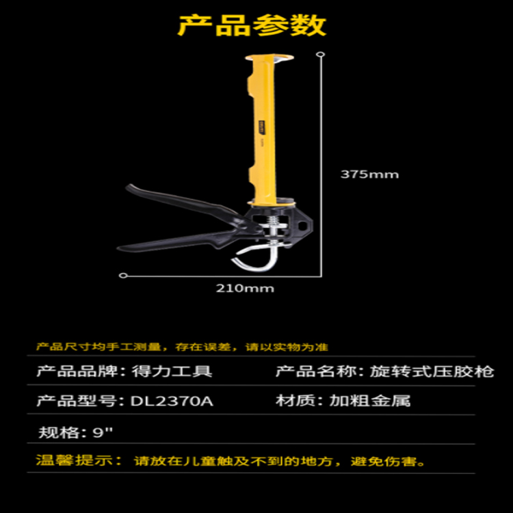 9英寸 DL2370A打膠均勻省力,不易打滑,產(chǎn)品可360°旋轉(zhuǎn),適用于狹小的空間