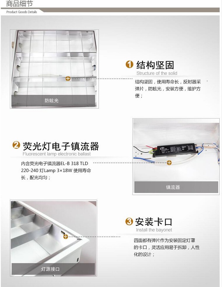 ●反射器采用優(yōu)質(zhì)的陽極氧化鋁