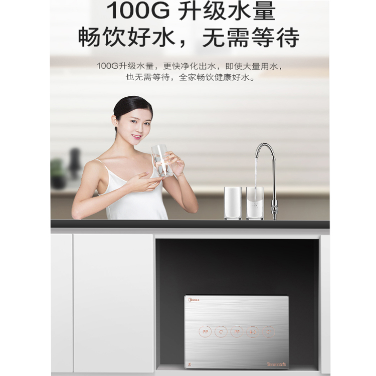 美的JD100直飲凈水器升級(jí)水量,大量用水無(wú)需等待。