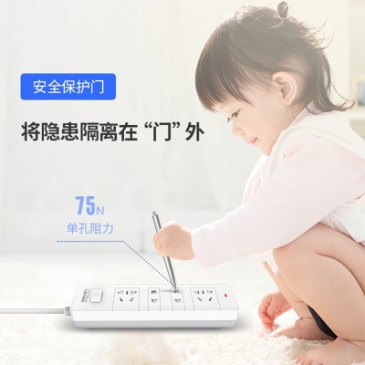 延長電源插排插孔安全門防止意外接觸手指或者尖銳物體插入時,單孔需