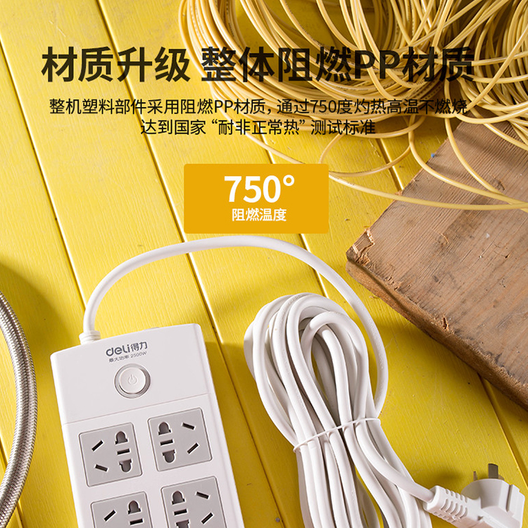 延長電源插排材質(zhì)升級整體阻燃PP材質(zhì),整機(jī)塑料部件采用阻燃PP材質(zhì)