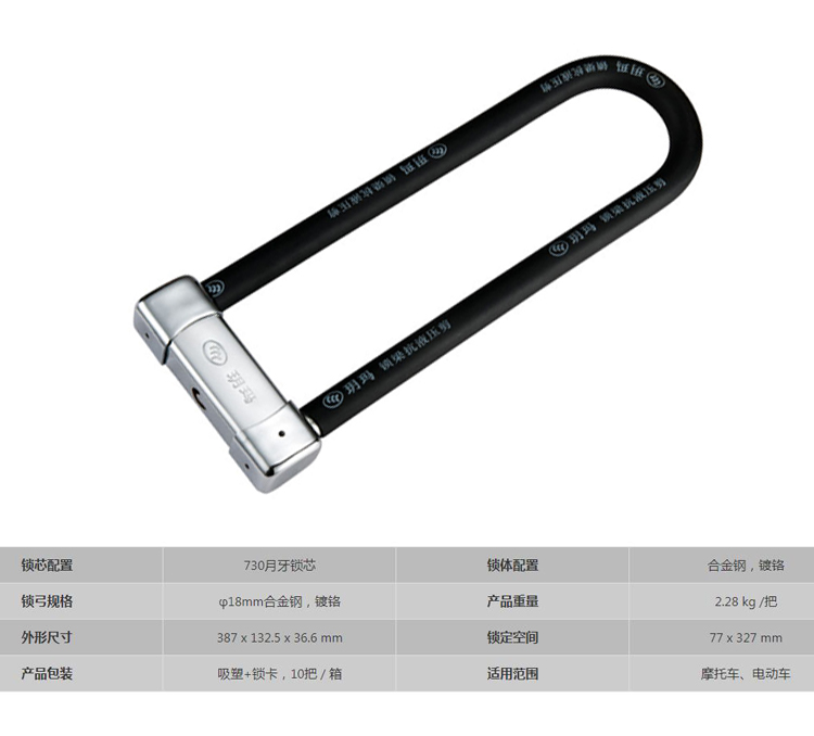 玥瑪電動(dòng)車(chē)U型鎖防盜鎖超B級(jí)別鎖芯,更防盜。