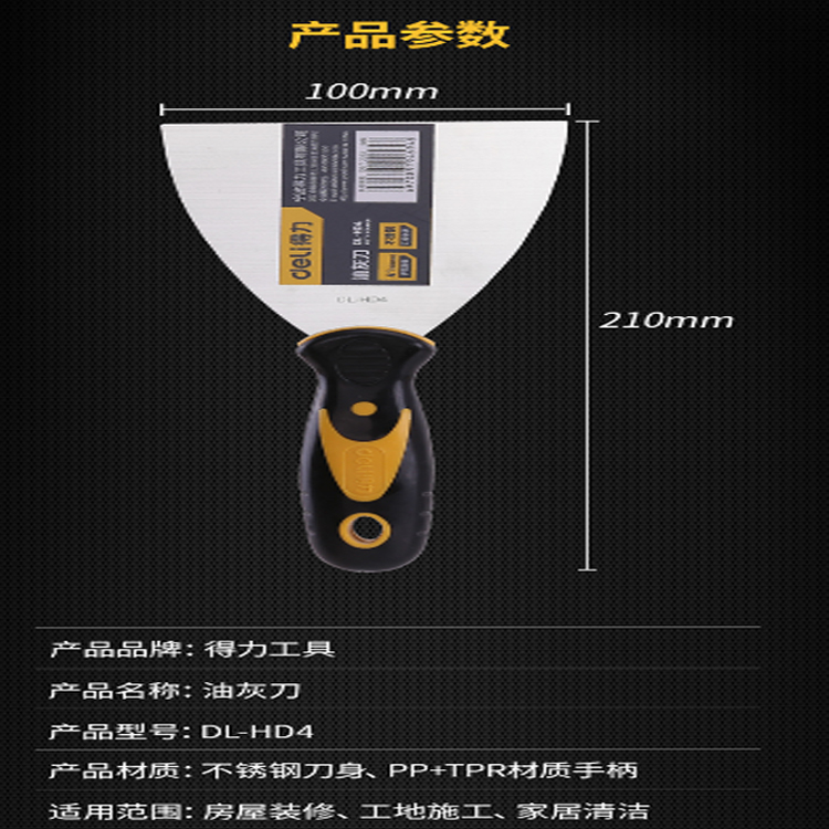 得力(deli) 不銹鋼油灰刀清潔刮刀鏟刀抹灰膩子刀4英寸 DL-HD4