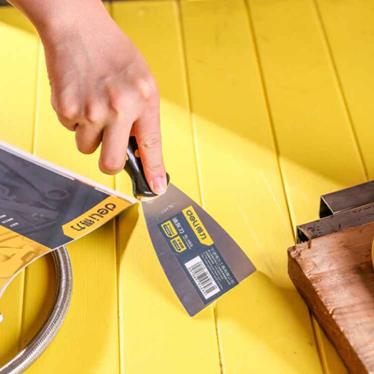 得力(deli) 不銹鋼油灰刀手柄采用PP+TPR材質(zhì)制作,手感舒適,防滑耐刮