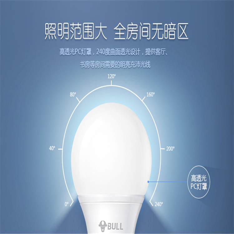 公牛LED球泡燈MQ-A103/E14高透光PC燈罩,240度曲面透光設計,照明