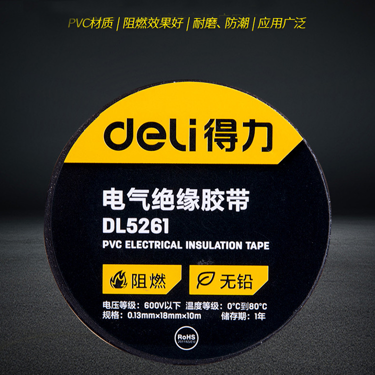 寧波得力電氣絕緣膠帶DL5271電線膠布PVC絕緣防護工具
