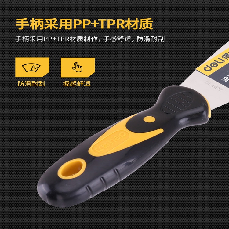 得力油灰刀鋼鏟刀注塑手柄,握感舒適。