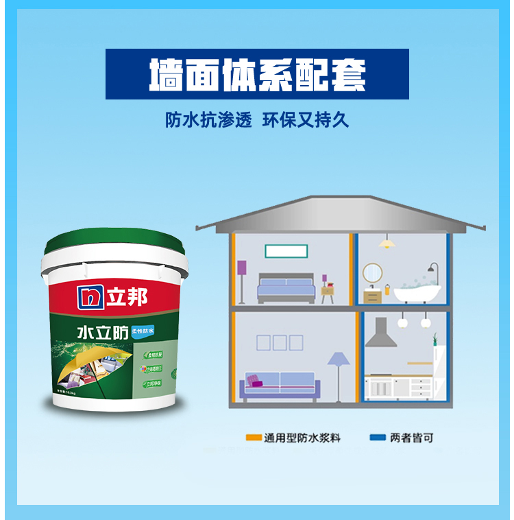 立邦 水立防防水系列:防水抗?jié)B透、環(huán)保又持久。