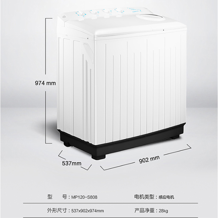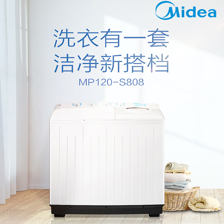 美的 Midea 洗衣機(jī)半自動(dòng) 12公斤大容量 雙桶雙缸 強(qiáng)力洗滌 MP120-S808