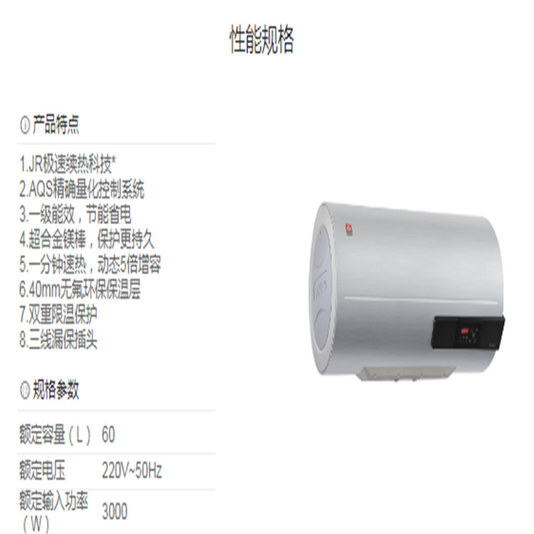 櫻花SEH-6015A JR系列電熱水器電熱水器儲水式速熱電熱水器產(chǎn)品參數(shù)