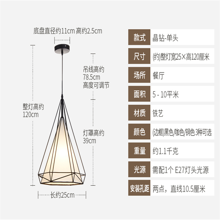 - 型號名稱【晶鉆混搭風(fēng)】3頭現(xiàn)代北歐風(fēng)鉆石狀【送552700K光源】