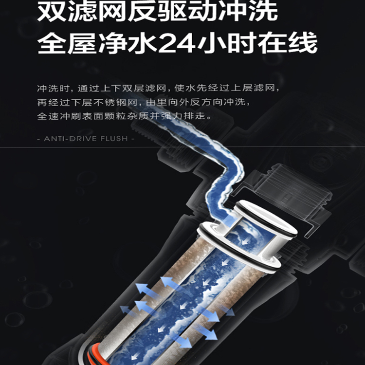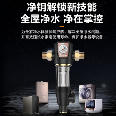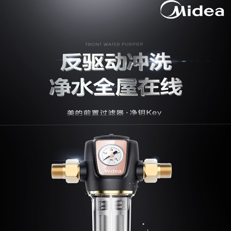 美的凈水前置過濾器雙濾網(wǎng)反驅(qū)動(dòng)沖洗,全屋凈水24小時(shí)在線。