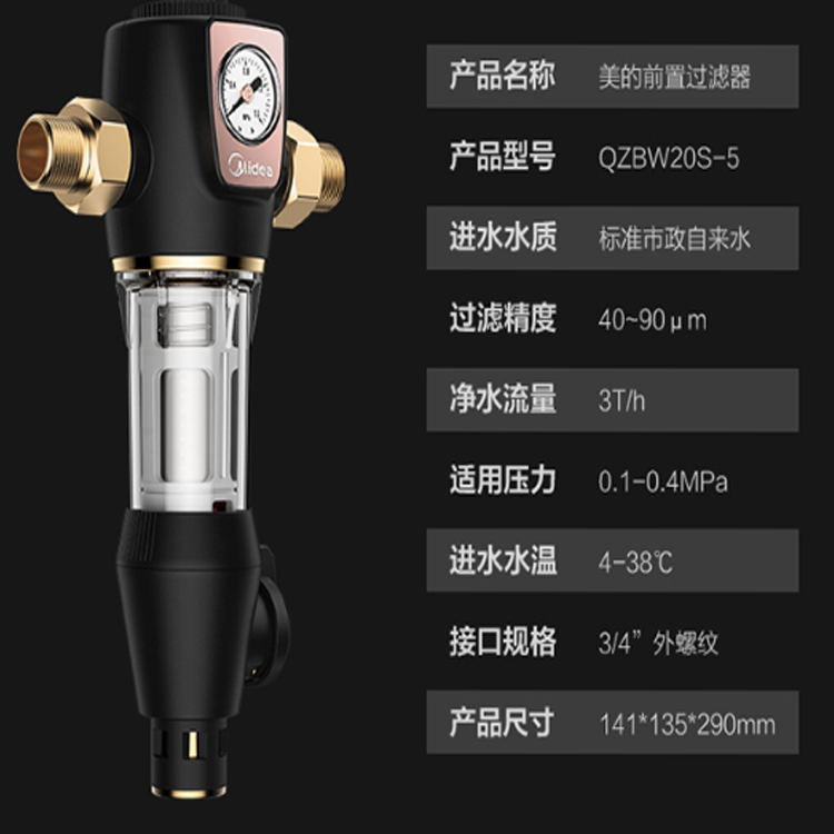 美的凈水前置過濾器采用不銹鋼濾網(wǎng),高精度有效過濾。