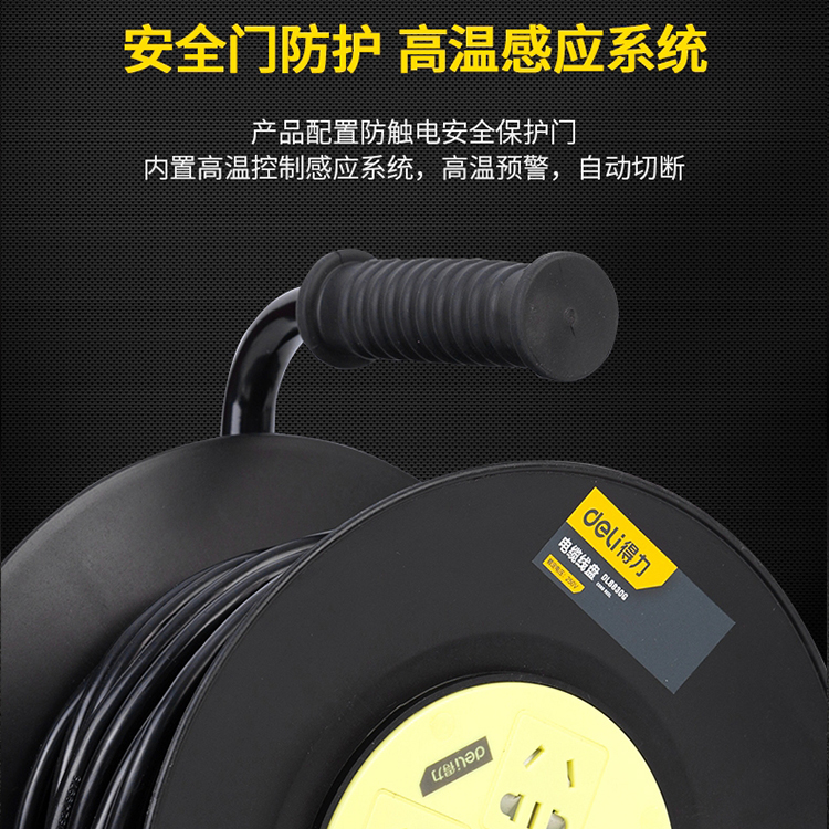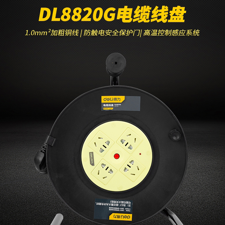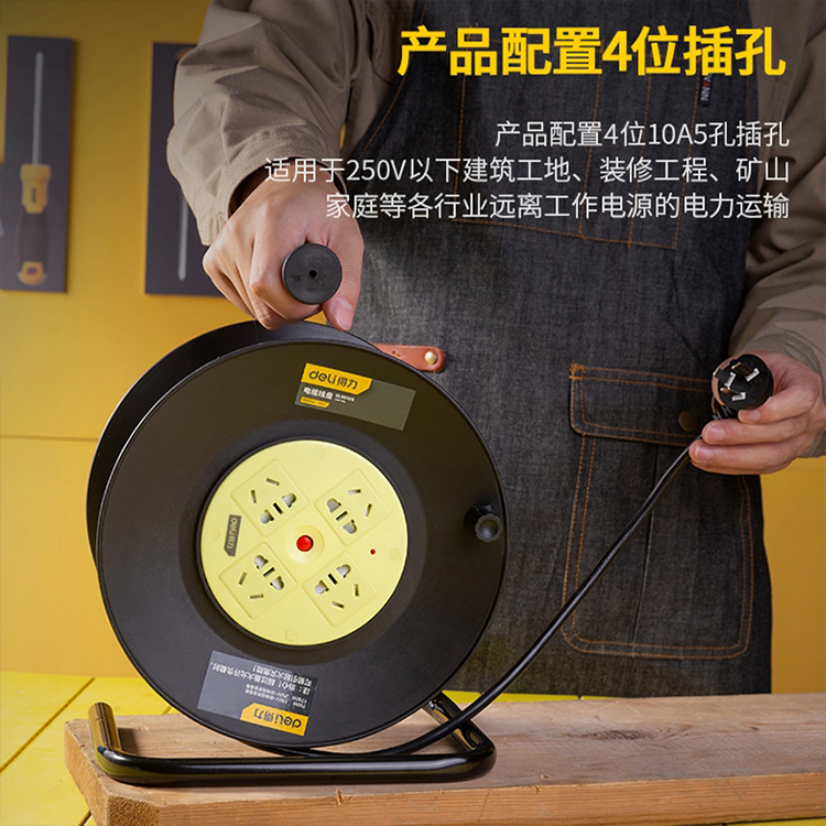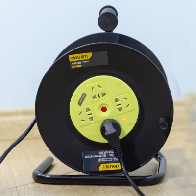 得力電纜線盤DL8830G移動(dòng)式電纜繞線卷線盤地拖空盤延長(zhǎng)線插座