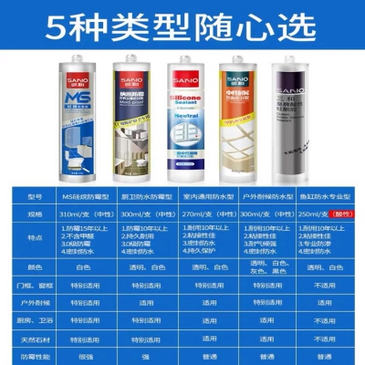 三和玻璃膠密封膠防水中性耐候硅酮膠防霉性強(qiáng)力免釘膠廚衛(wèi)結(jié)構(gòu)膠