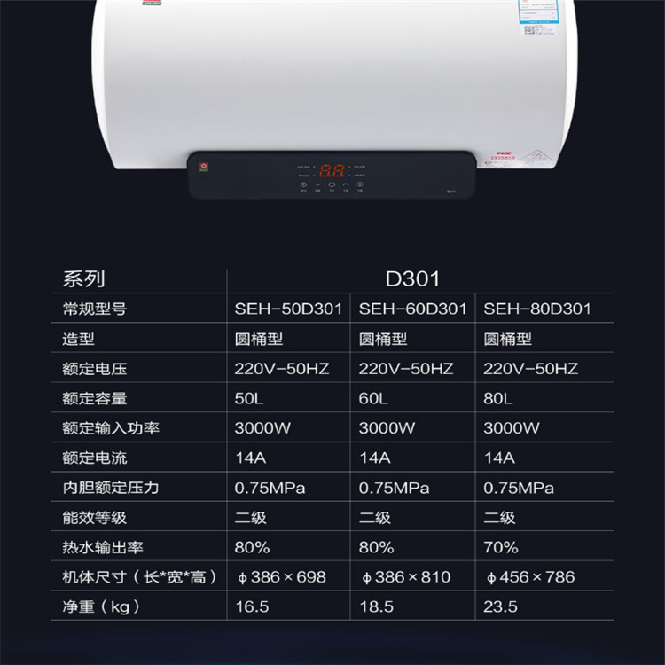 櫻花SEH-50D301速控系列電熱水器儲水式速熱電熱水器產(chǎn)品參數(shù)