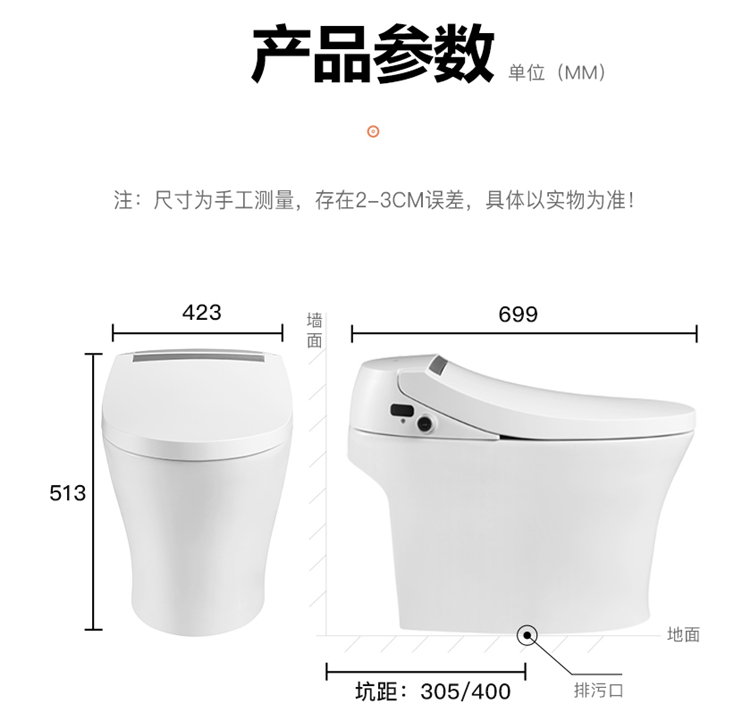 自動沖洗烘干坐便器3600環(huán)繞布水孔噴射沖水,排污順暢