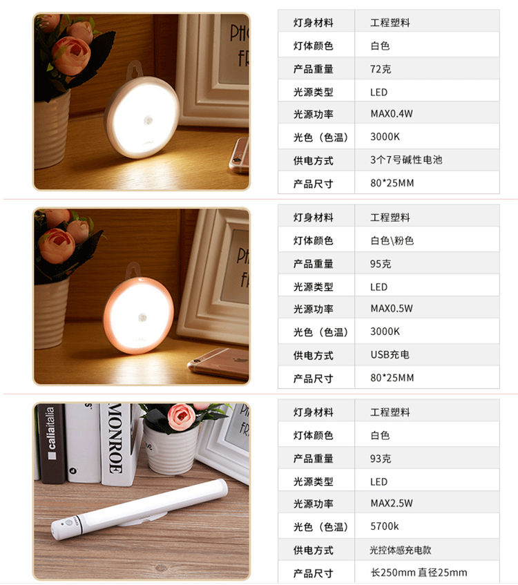 - 型號名稱【電池款】光控體感小夜燈一白色