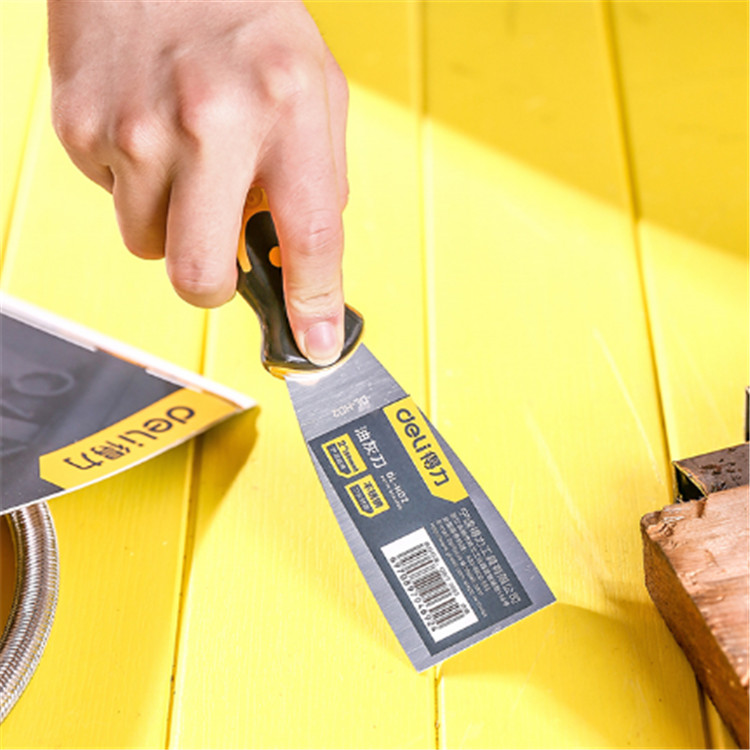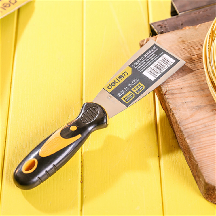 得力不銹鋼油灰刀注塑手柄,握感舒適。