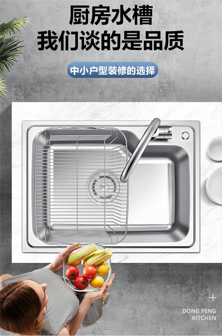 東鵬衛(wèi)?。―ONGPENG)304不銹鋼水槽單槽廚房面積小于15平方,安裝大單槽較為合理,