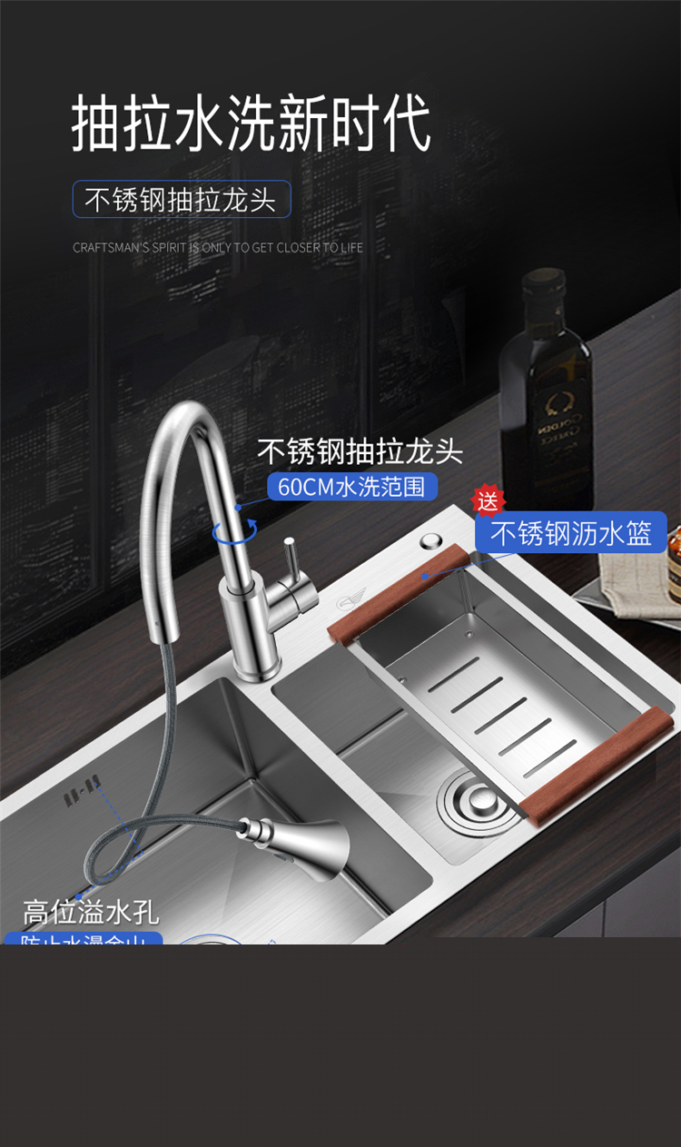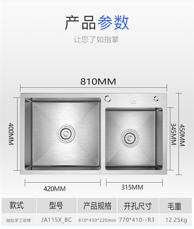 - 型號(hào)名稱手工雙槽810*450+抽拉龍頭