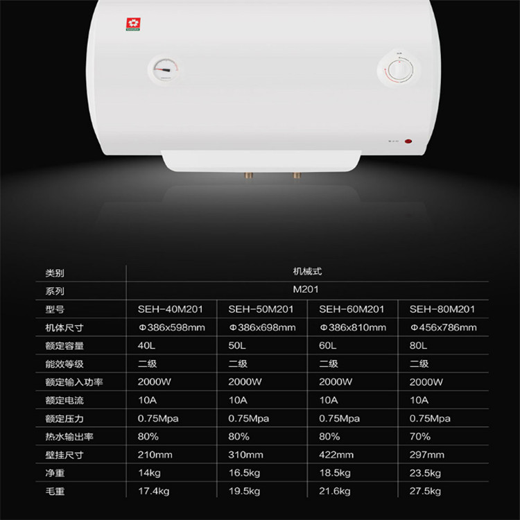 櫻花SEH-40M201快熱系列電熱水器儲(chǔ)水式速熱電熱水器產(chǎn)品參數(shù)