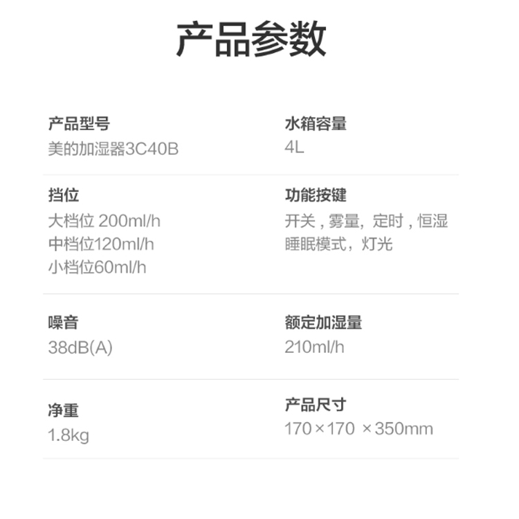 美的(Midea)空氣加濕器凈菌銀離子技術(shù),潔凈水霧守護(hù)健康。