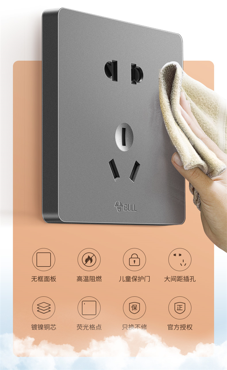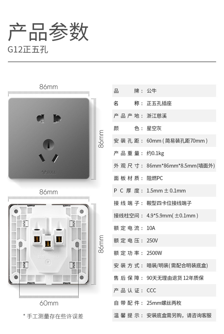 開關插座面板86型直五孔插座公牛品質 內外兼修