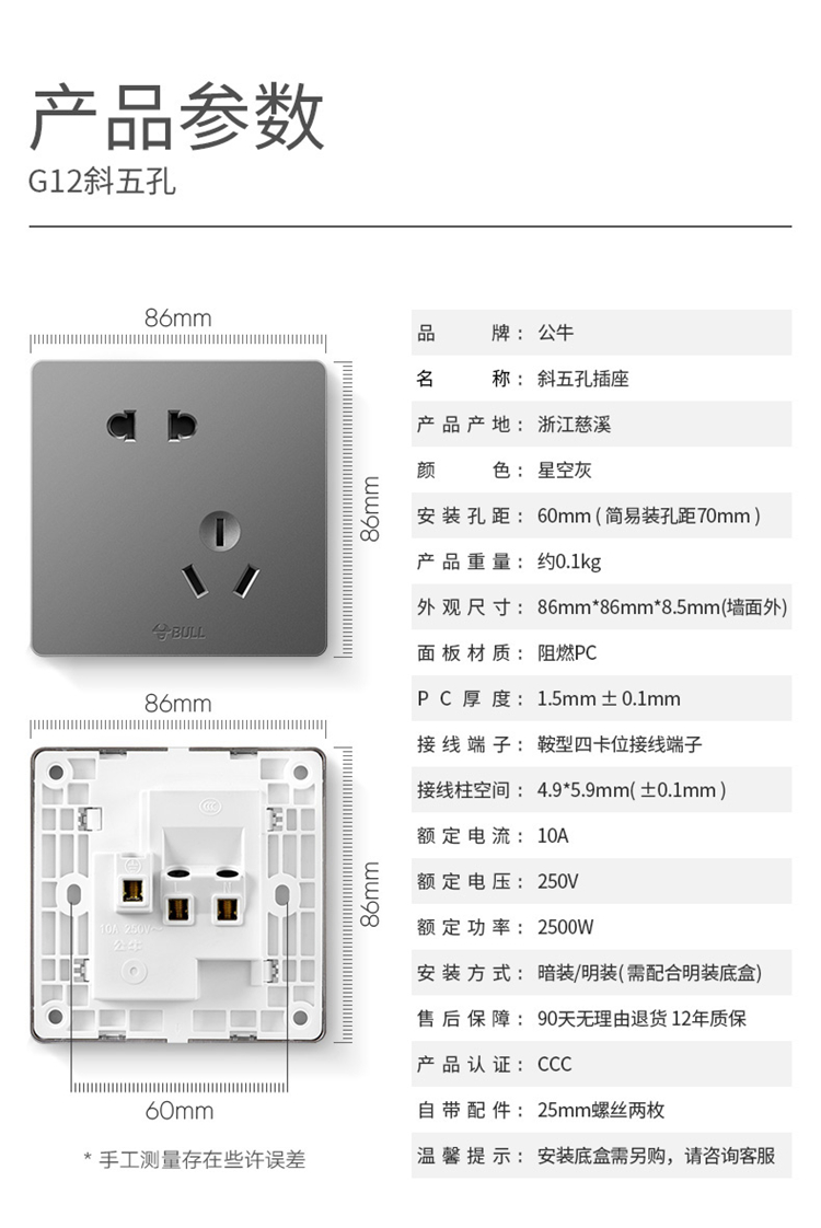 面板86型斜五孔插座公牛品質(zhì) 內(nèi)外兼修
