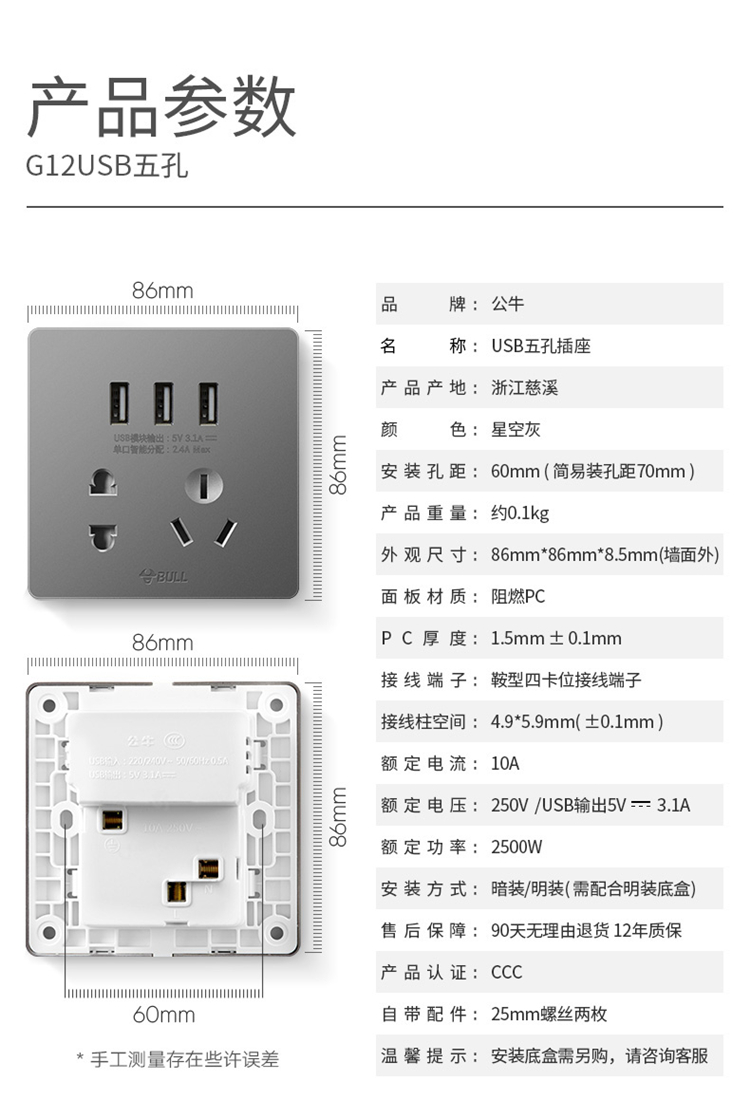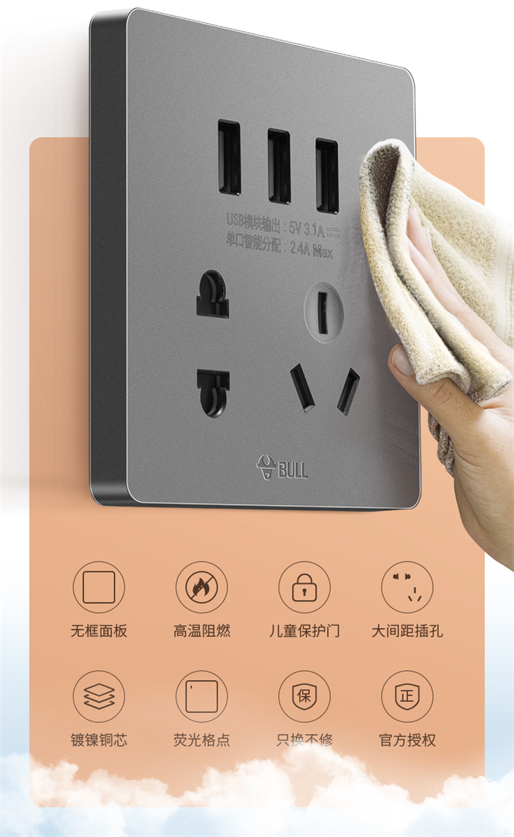 USB五孔插座86型公牛品質(zhì) 內(nèi)外兼修