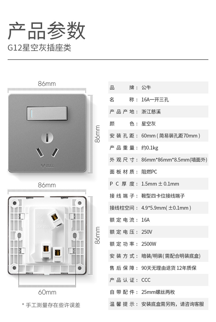 三孔3孔帶開關(guān)面板86型公牛品質(zhì) 內(nèi)外兼修