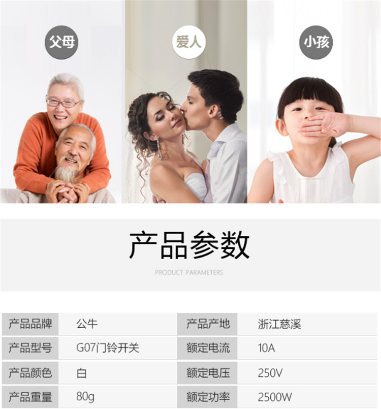 公牛(BULL) 開關(guān)插座86型一開有線叮咚客人門鈴開關(guān)按鈕客人電鈴開關(guān)G07K115Y