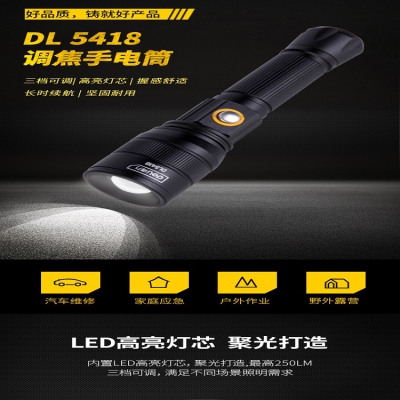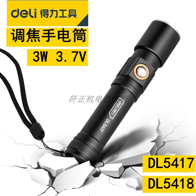 得力強光手電筒led調(diào)焦家用多功能可充電式戶外照明便攜迷你手電DL5418DL5417