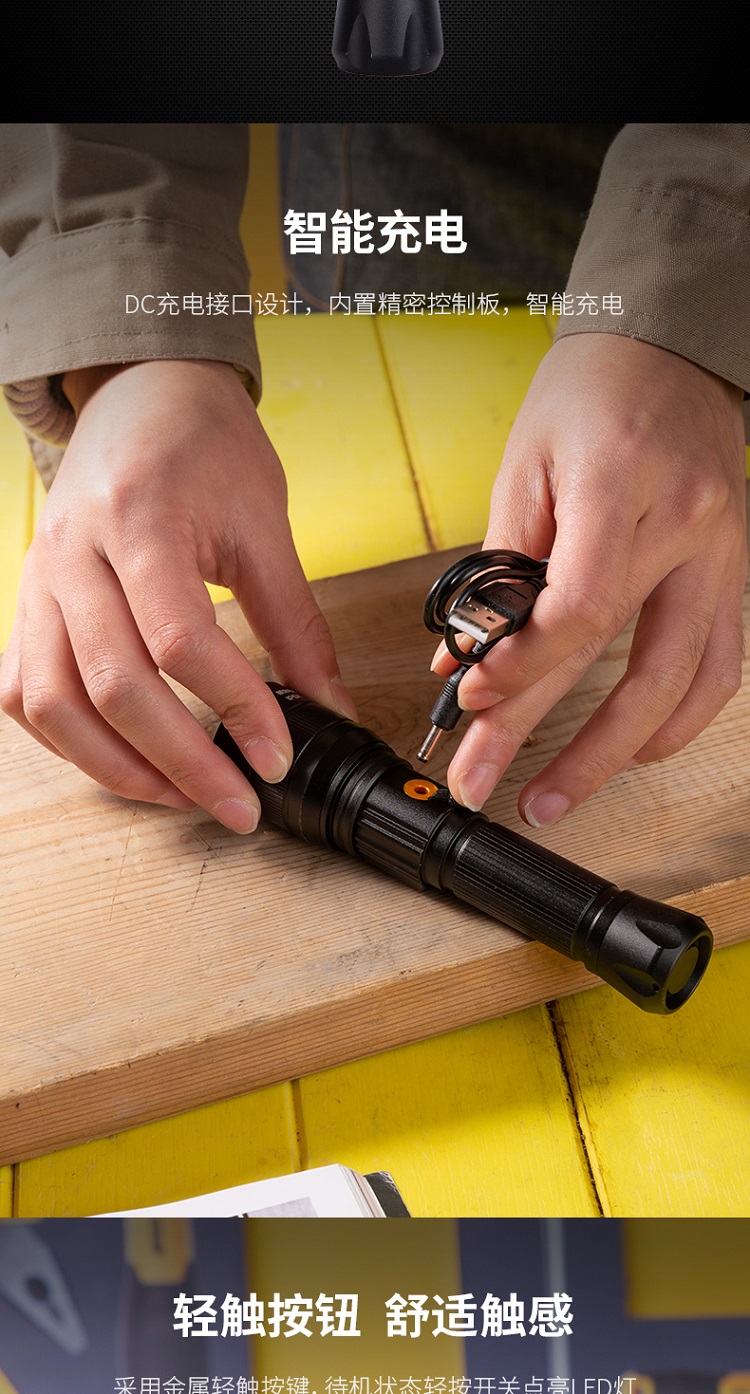 得力強光手電筒手動伸縮調(diào)焦,輕松實現(xiàn)遠近切換