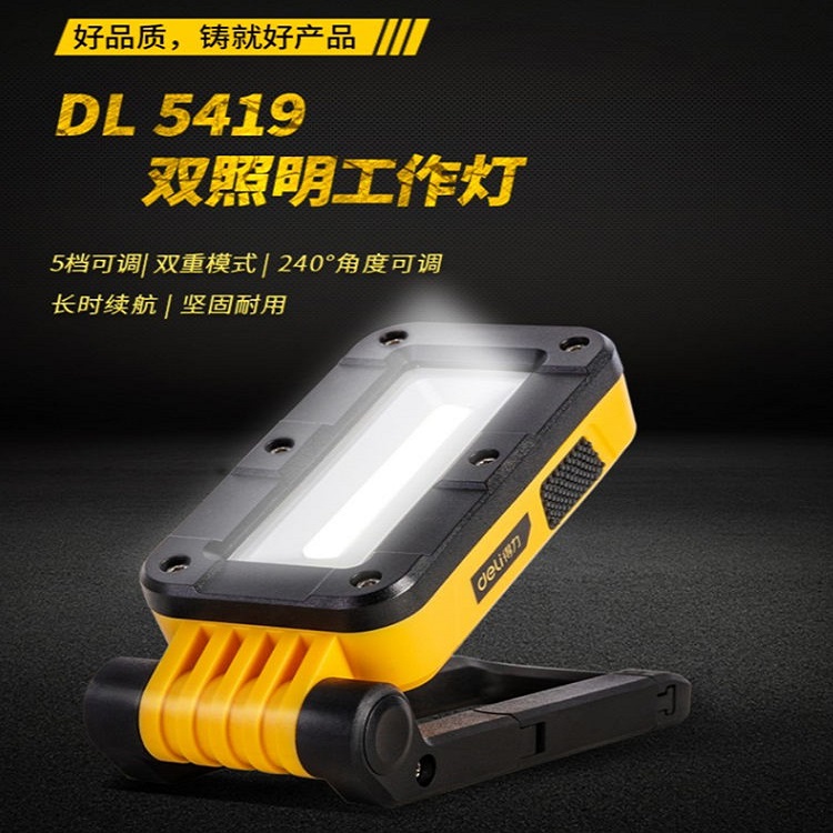得力雙照明鋰電工作燈 工業(yè)用帶強(qiáng)磁鐵USB可充電DL5419 DL5420