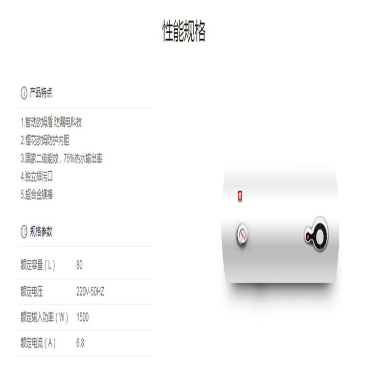 櫻花SEH-8002E快熱系列電熱水器儲水式速熱電熱水器產(chǎn)品參數(shù)