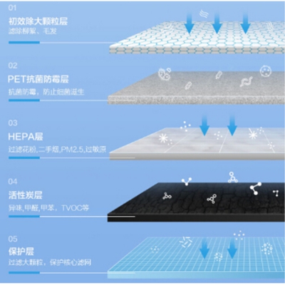 美的(Midea)空氣凈化濾網(wǎng)五層復(fù)合濾網(wǎng),精細(xì)過(guò)濾,高效濾除。
