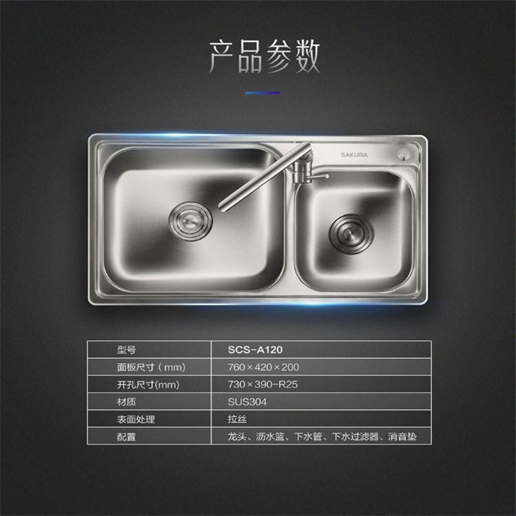 櫻花SCS-A120水槽廚房S304不銹鋼水槽洗菜盆單槽帶支撐架子大小洗碗臺(tái)盆手盆池經(jīng)久耐磨,長(zhǎng)久使用光潔如新