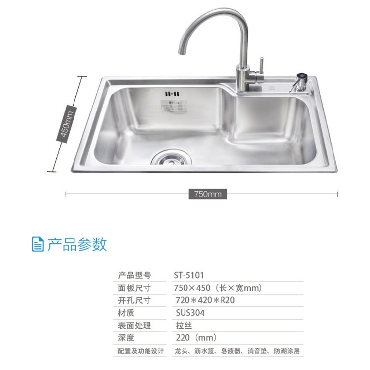 櫻花ST-5101水槽廚房S304不銹鋼水槽洗菜盆單槽帶支撐架子大小洗碗臺盆手盆池產(chǎn)品參數(shù)