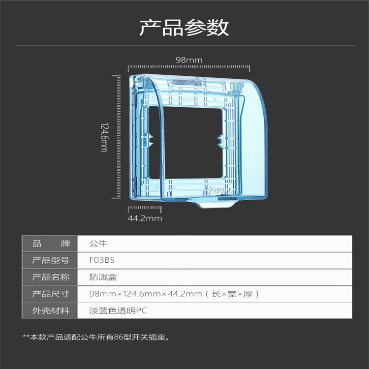 公牛防濺盒公牛開關(guān)插座86型防水開關(guān)面板盒 防濺盒防水罩浴室防水盒 F03B