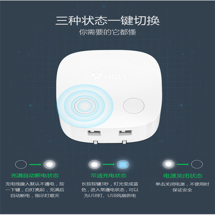 公牛插座 無線充電插頭 自動斷電充電器 雙USB防過充/總輸出2.4A/雙USB輸出