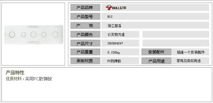 公牛開關(guān)插座底盒 家用暗裝廚房阻燃專家插座 H12底盒