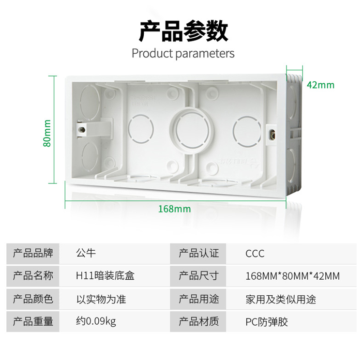 公牛開關(guān)插座底盒 家用暗裝廚房阻燃專家插座 H11底盒