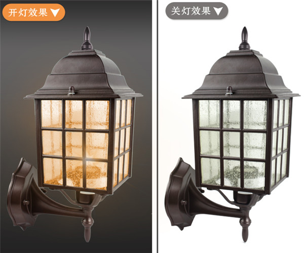 帝之苑戶外壁燈DH-12415A庭院照明燈開燈、關(guān)燈效果圖