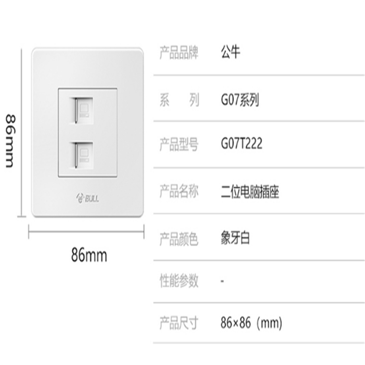 公牛(BULL) 開關插座 G07系列 二位電腦插座 86型面板G07T222 白色 暗裝