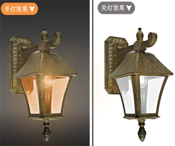 帝之苑戶外壁燈DH-60515白熾燈節(jié)能庭院照明燈開燈、關(guān)燈效果圖